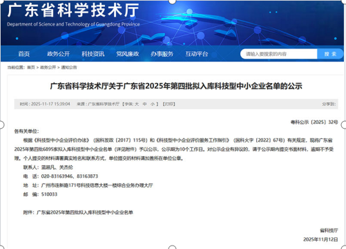 2025年11月17日,廣東省科學技術廳發布了關于廣東省2025年第四批擬入庫科技型中小企業名單的公示,在企業名單上,廣州阿隆索智能科技有限公司赫然上榜。