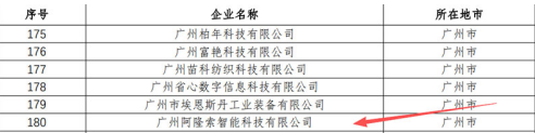 廣州阿隆索智能科技有限公司入選廣東省第四批擬入庫科技型中小企業名單